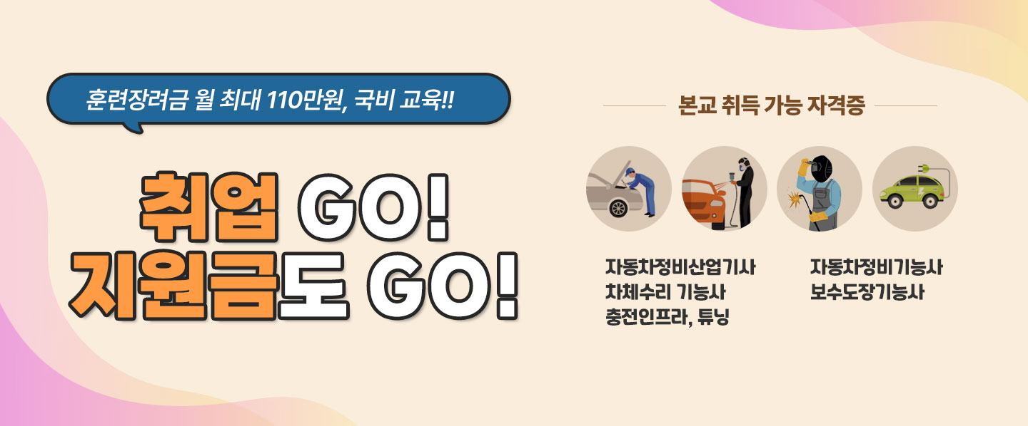 * ÀÚ±â¼Ò°³ ¾È³çÇϼ¼¿ä. Àú´Â ÆÄŰ½ºÅº¿¡¼­ ¿Ô°í, F6ºñÀÚ·Î ³»ÀϹè¿òÄ«µå¸¦ ¹ß±ÞÇÏ¿© ÃÖ±Ù 8°³¿ù µ¿¾È ºÎ»êÀÚµ¿Â÷Á÷¾÷Çб³¿¡¼­ ÀÚµ¿Â÷ Á¤ºñ ±³À°À» ¹Þ°í  ¼ö·áÇÏ°Ô µÇ¾ú½À´Ï´Ù   * 8°³¿ù µ¿¾È °øºÎÇϸ鼭 °¡Àå ÁÁ¾Ò´ø Á¡Àº ¹«¾ùÀ̾ú³ª¿ä Á÷Á¢ Â÷·®À» Á¡°ËÇÏ°í ºÐÇØÇϰí Á¶¸³ÇÏ´Â °úÁ¤ÀÌ ¸¹¾Æ¼­ ½ÇÁ¦ Á¤ºñ ±â¼úÀ» ¸öÀ¸·Î ÀÍÈú ¼ö À־ ÁÁ¾Ò½À´Ï´Ù. ¶ÇÇÑ ¼±»ý´ÔµéÀÌ Á¤¸» Ä£ÀýÇÏ°í ½±°Ô ¼³¸íÇØ Áּż­,  Çѱ¹¾î°¡ ¿Ïº®ÇÏÁö ¾ÊÀº Àúµµ Àß ÀÌÇØÇÏ°í µû¶ó°¥ ¼ö ÀÖ¾ú½À´Ï´Ù. * ¾ÕÀ¸·ÎÀÇ °èȹÀº ¹«¾ùÀΰ¡¿ä? ¾ÕÀ¸·Î´Â ³²¾ÆÀÖ´Â 4ȸÂ÷ ¿ÜºÎÆò°¡¸¦ Àß ÁغñÇØ¼­ ÀÚµ¿Â÷Á¤ºñ»ê¾÷±â»ç ÀÚ°ÝÁõÀ» ÃëµæÇϰí, Çѱ¹¿¡¼­ Á¤ºñ»ç·Î ÀÏÇÏ´Â °ÍÀÌ ¸ñÇ¥ÀÔ´Ï´Ù.  ºÎ»êÀÚµ¿Â÷Á÷¾÷Çб³¿¡¼­ ¹è¿î ³»¿ëÀÌ ¾ÕÀ¸·ÎÀÇ Áø·Î¿¡ Å« ±â¹ÝÀÌ µÉ °ÍÀ̶ó°í È®½ÅÇÕ´Ï´Ù.   * ÀÔÇÐÀ» ¾ÕµÐ Çлý¿¡°Ô ÇѸ¶µð ÇØÁÖ¼¼¿ä ÀÚµ¿Â÷ ±â¼úÀ» ¹è¿ì°í ½Í´Ù¸é ºÎ»êÀÚµ¿Â÷Á÷¾÷Çб³¸¦ Á¤¸» ÃßõÇÕ´Ï´Ù.  ¼±»ý´Ôµéµµ Ä£ÀýÇϰí, ½Ç½À ½Ã¼³ÀÌ Àß °®ÃçÁ® À־ ½ÇÁ¦ Á¤ºñ ±â¼úÀ»  ÀÍÈ÷±â¿¡ ¸Å¿ì ÁÁ½À´Ï´Ù. Çѱ¹¾î°¡ Á¶±Ý ºÎÁ·Çصµ °ÆÁ¤ÇÏÁö ¸¶¼¼¿ä.  ¼±»ý´ÔµéÀÌ ÀÌÇØÇÒ ¶§±îÁö Àß µµ¿ÍÁֽñ⠶§¹®¿¡ ¿Ü±¹Àεµ ¹è¿ì±â ÁÁÀº ȯ°æÀÔ´Ï´Ù. Àúó·³ »õ·Î¿î ±â¼úÀ» ¹è¿ì°í ¹Ì·¡¸¦ ÁغñÇÏ°í ½ÍÀº ºÐµé¿¡°Ô ÃÖ°íÀÇ ¼±ÅÃÀ̶ó°í »ý°¢ÇÕ´Ï´Ù.